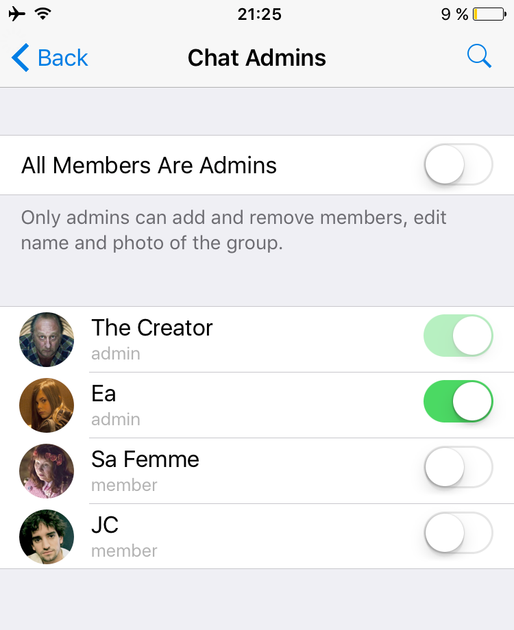 From now on, you can choose how your groups will operate. By default, all members are still in control. But if you want more order, you can throw the switch and appoint additional administrators to your group.